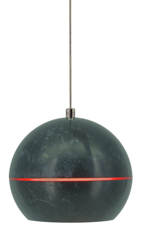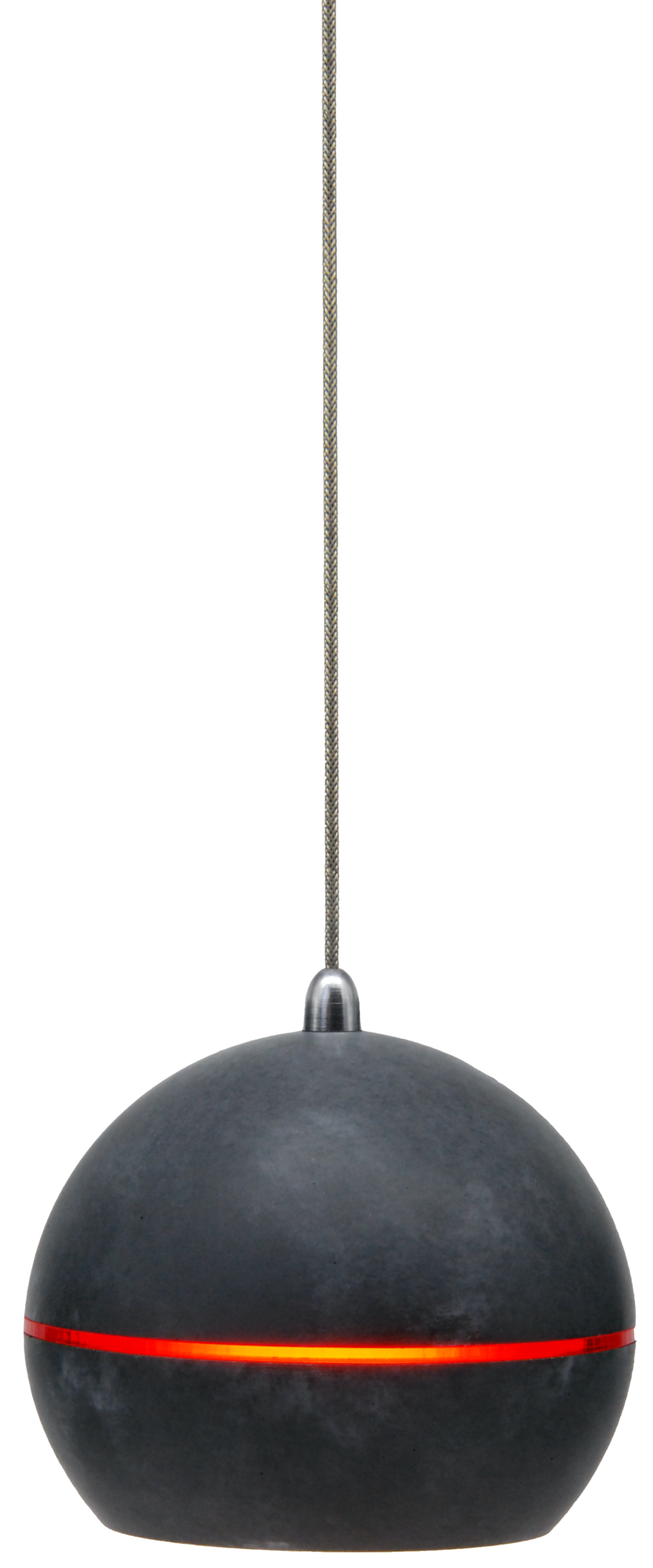 Shell gegossen aus pigmentiertem Beton in den Farben OPAL oder GRANAT. Ausgestattet mit fest installiertem LED-Panel an rotem Textilkabel.