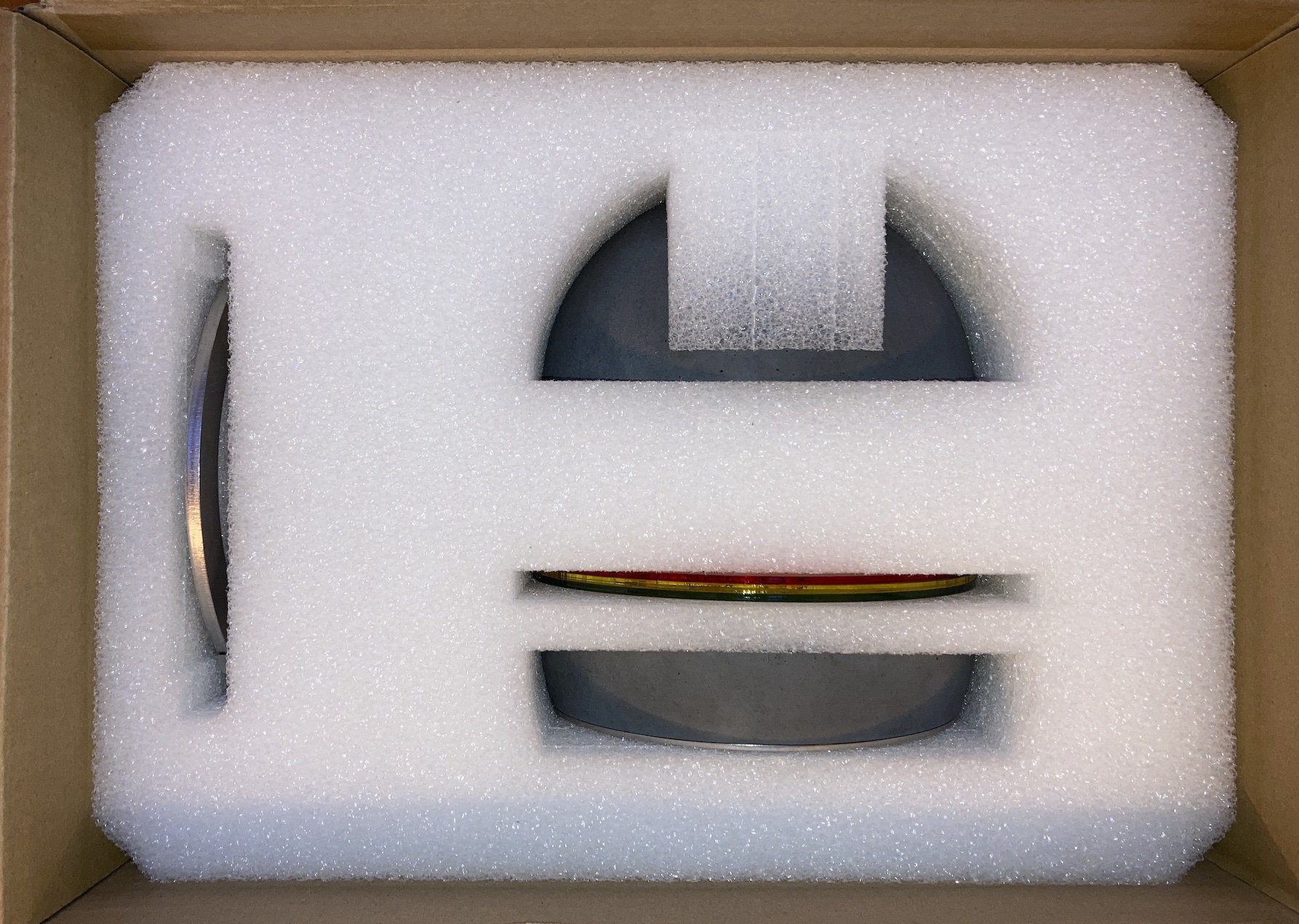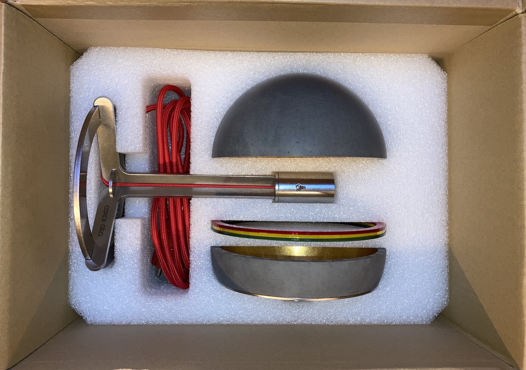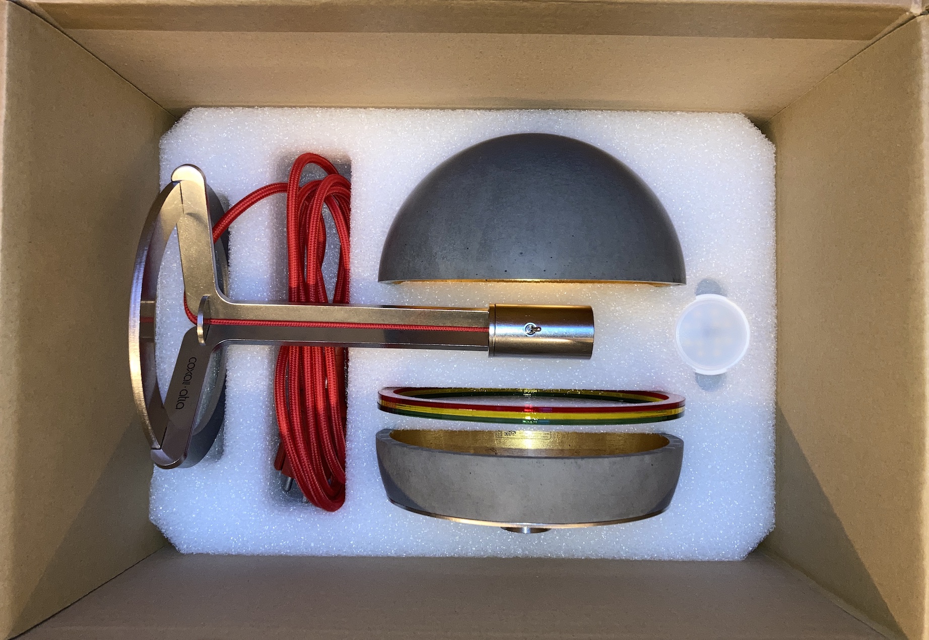 Lieferumfang : Leuchte atla・basıc ⎜drei transluzente Farbringe ⎜gedrucktes Manual