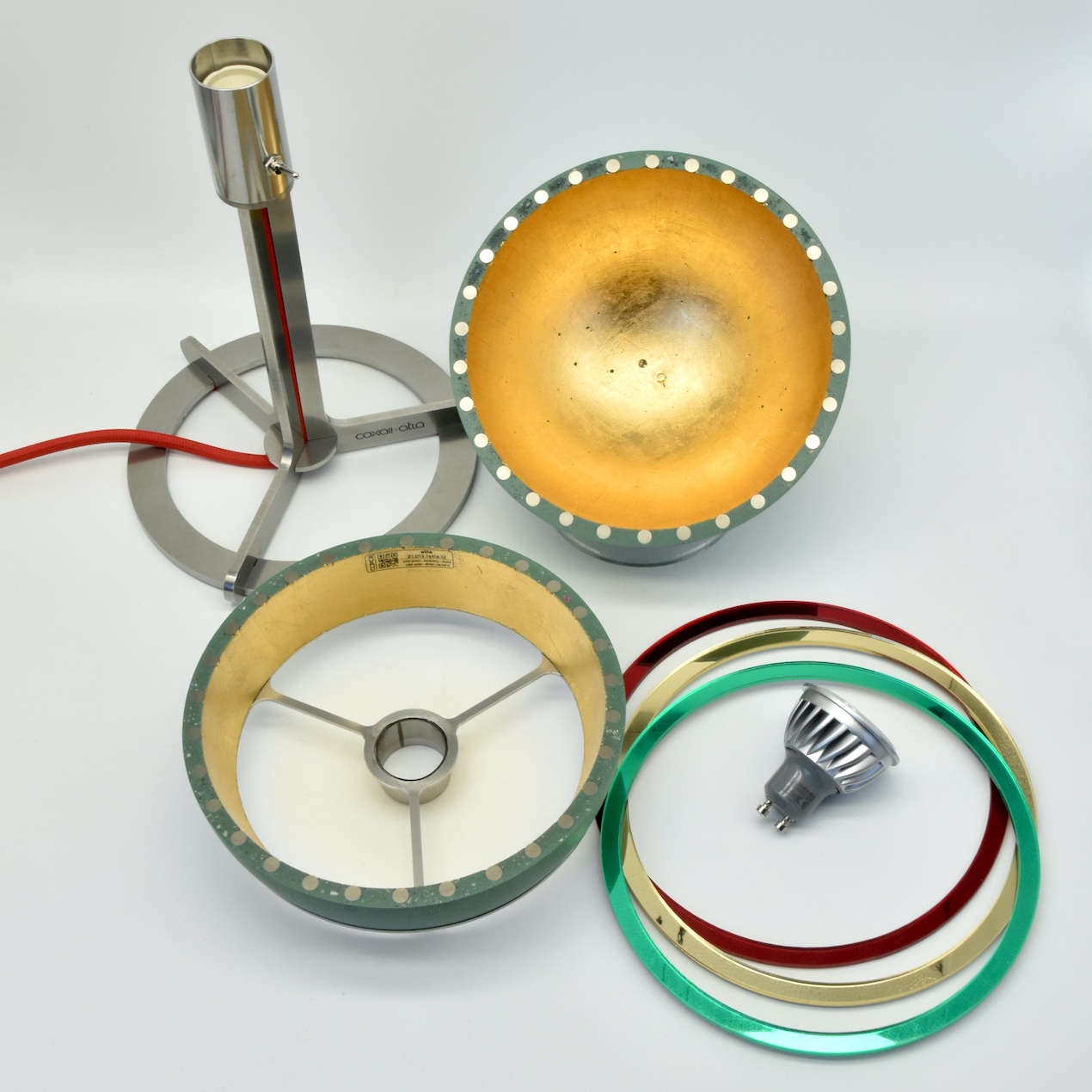Lieferumfang : Leuchte atla⎜drei transluzente Farbringe⎜gedrucktes Manual