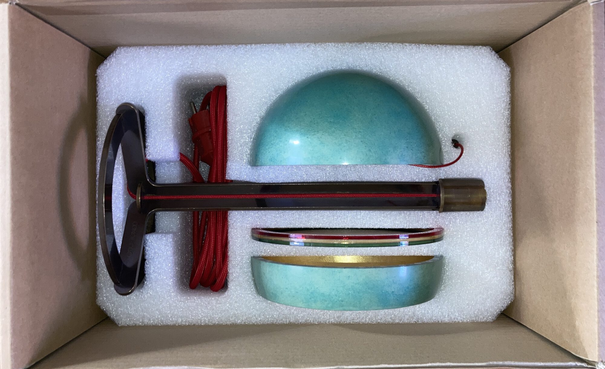 Lieferumfang : Leuchte atla DLX ⎜drei transluzente Farbringe⎜Stoffhandschuhe⎜gedrucktes Manual