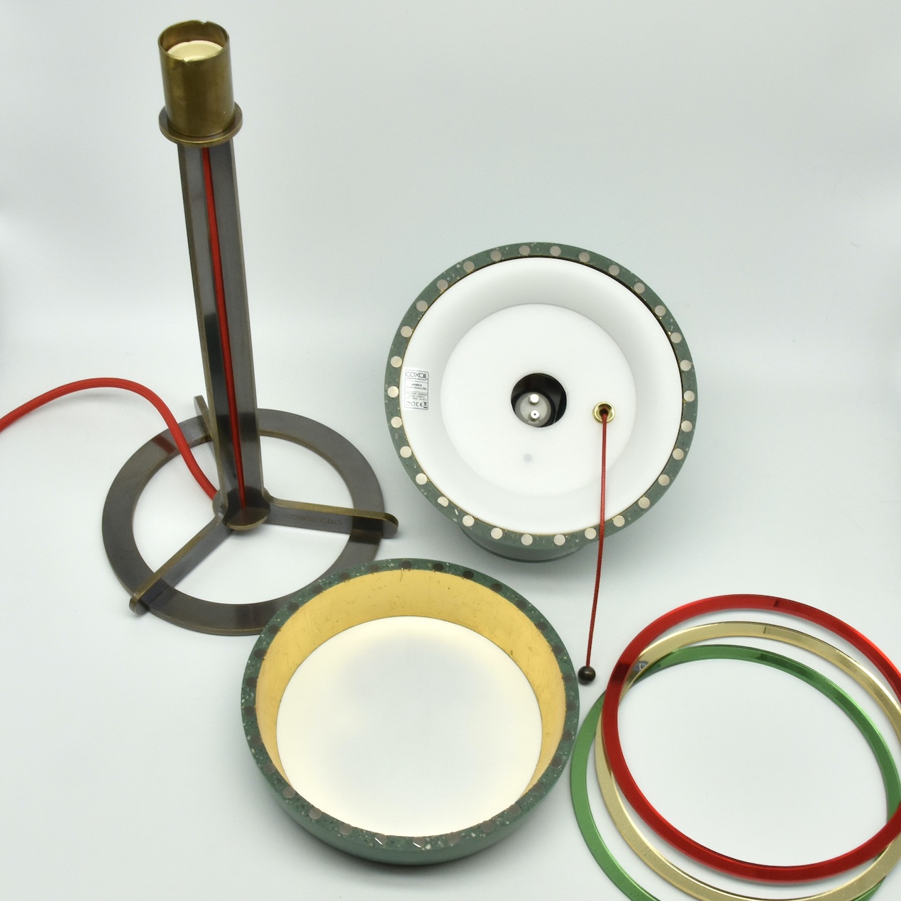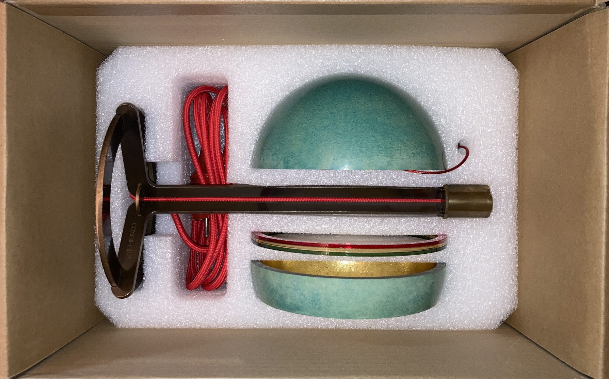 Lieferumfang : Leuchte atla DLX ⎜drei transluzente Farbringe⎜Stoffhandschuhe⎜gedrucktes Manual