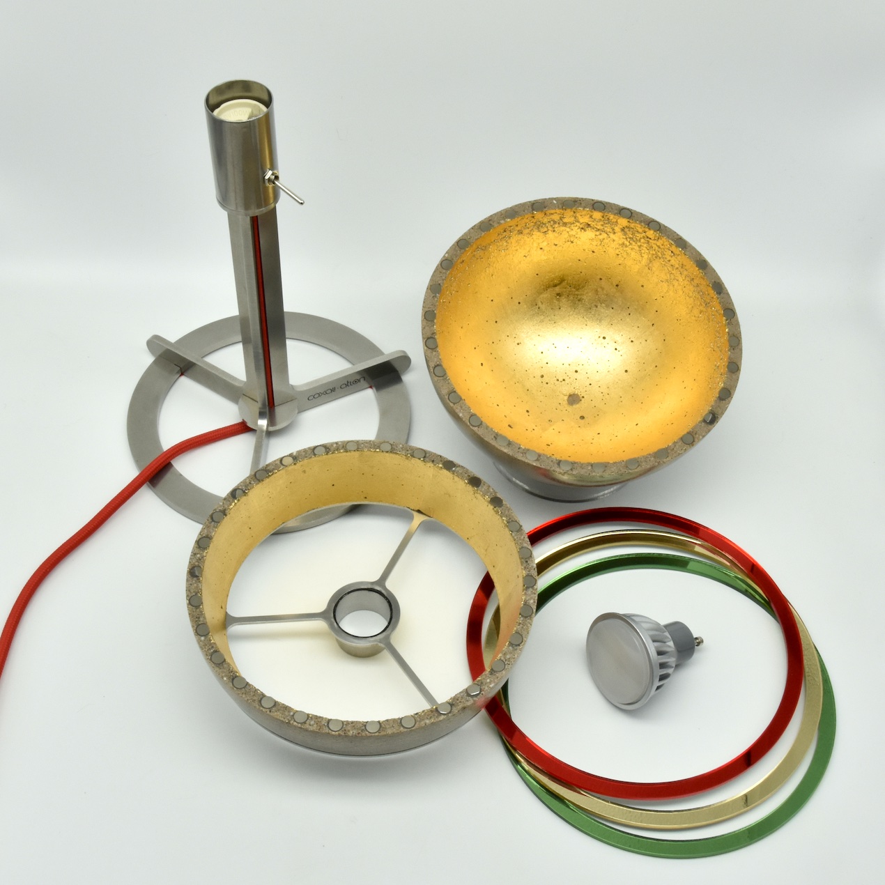 Lieferumfang : Leuchte atlon⎜drei transluzente Farbringe⎜gedrucktes Manual