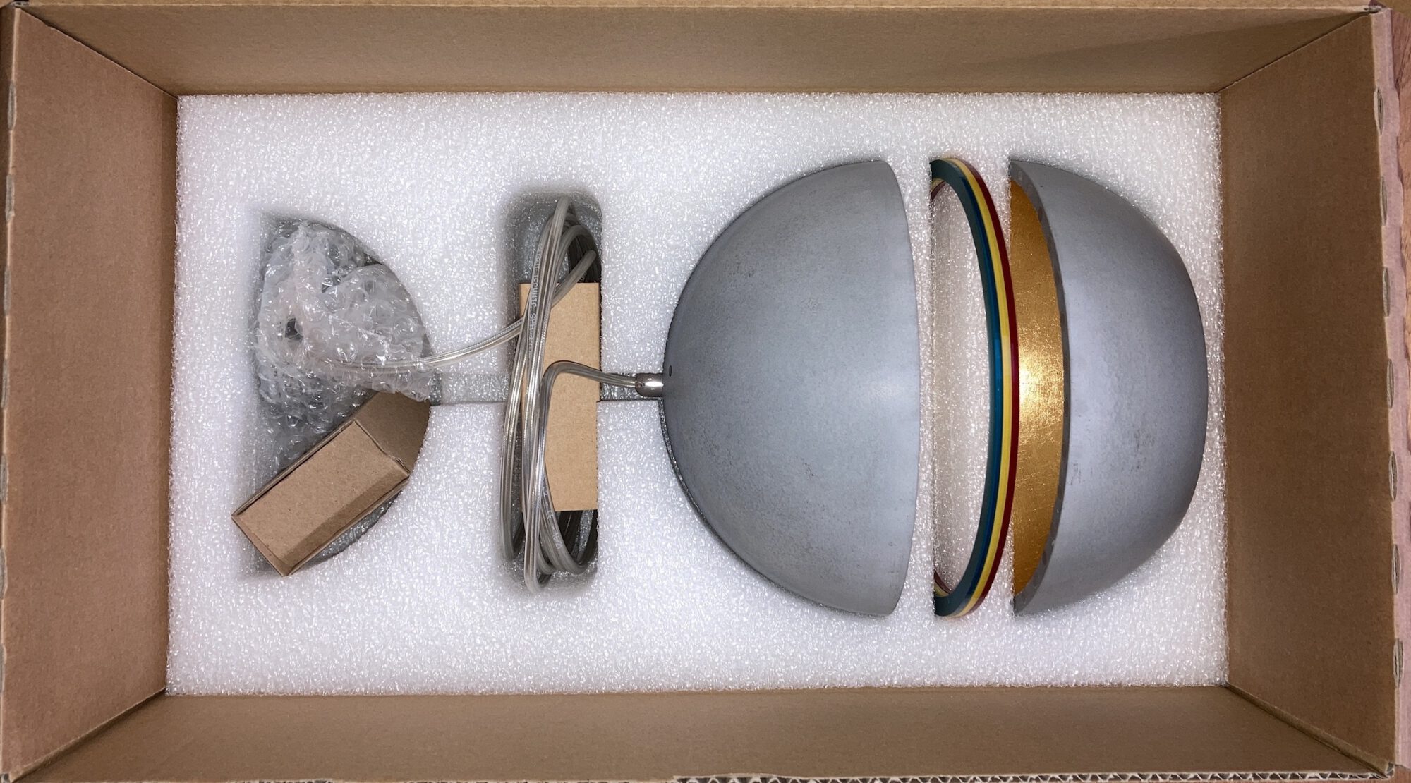 Lieferumfang : Leuchte scutı・FIX SOURCE・control ⎜Baldachin anschlussfertig mit DeckenPin ⎜drei transluzente Farbringe ⎜gedrucktes Manual
